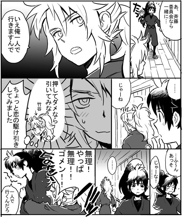 酔っ払ってる久々知と介抱するタカ丸絵でした